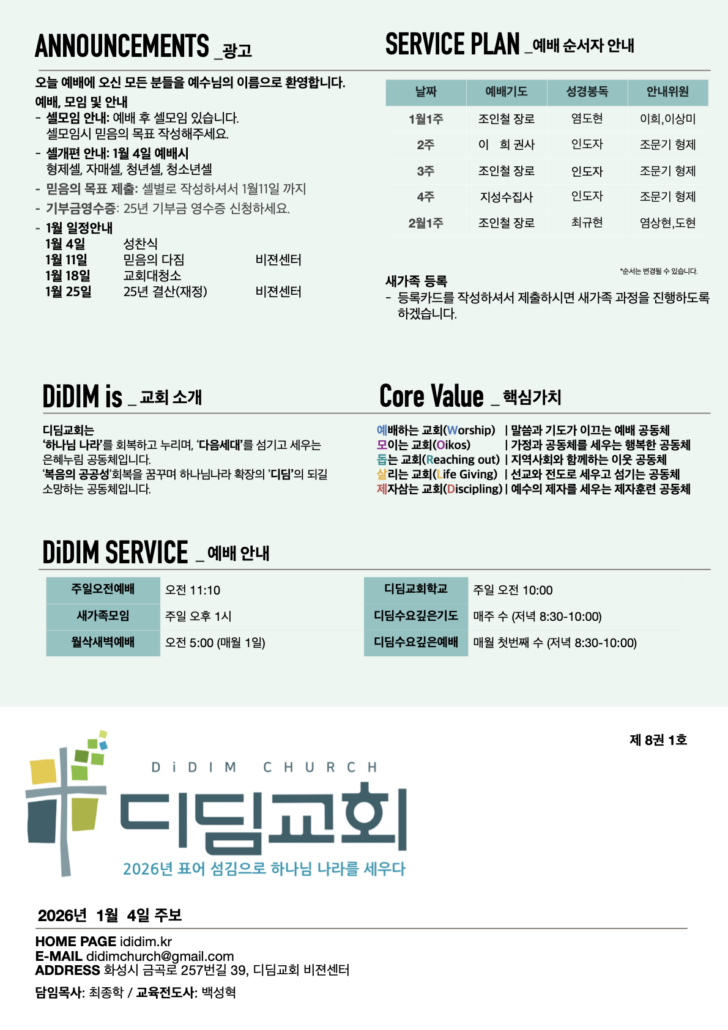 2026년 1월 4일 주일주보