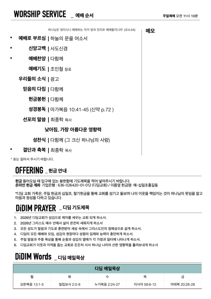 현재 위치: 홈1 / Elements2 / Portfolio Grid3 / 2026년 1월 4일 주일주보