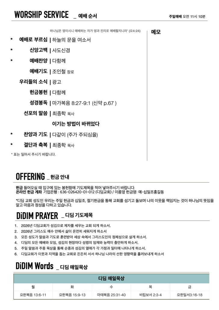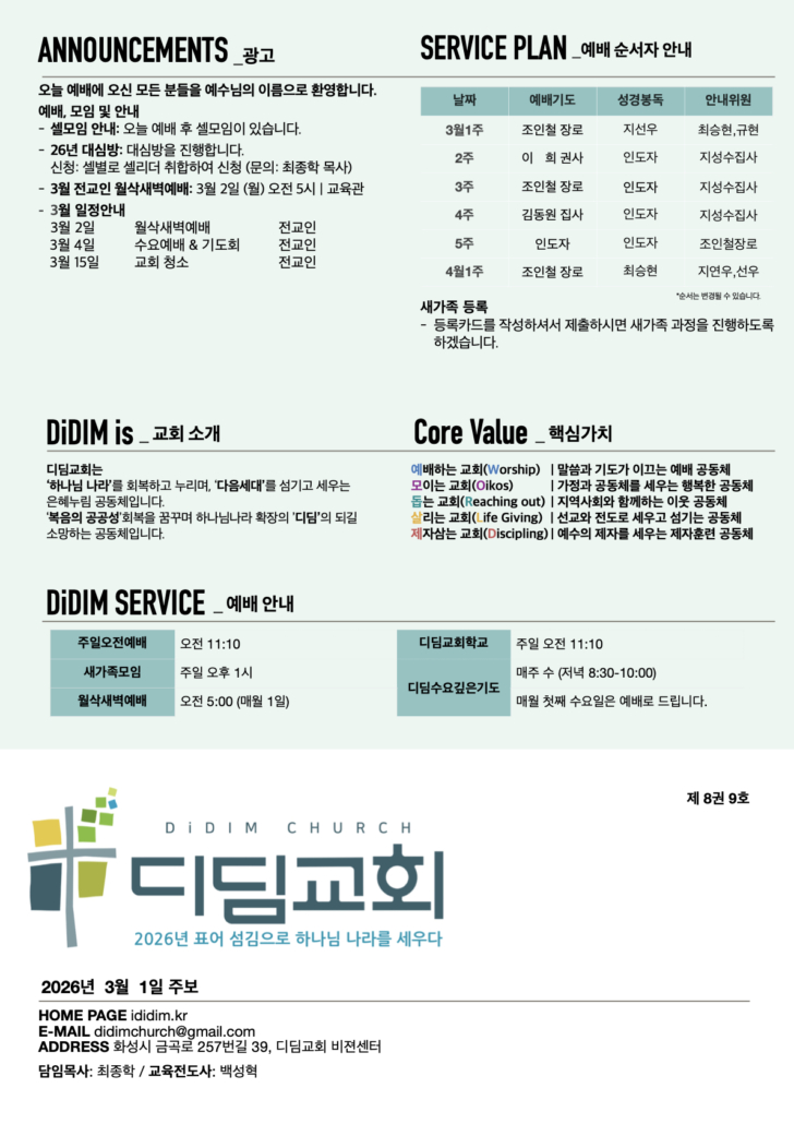 2026년 3월 1일 주일주보