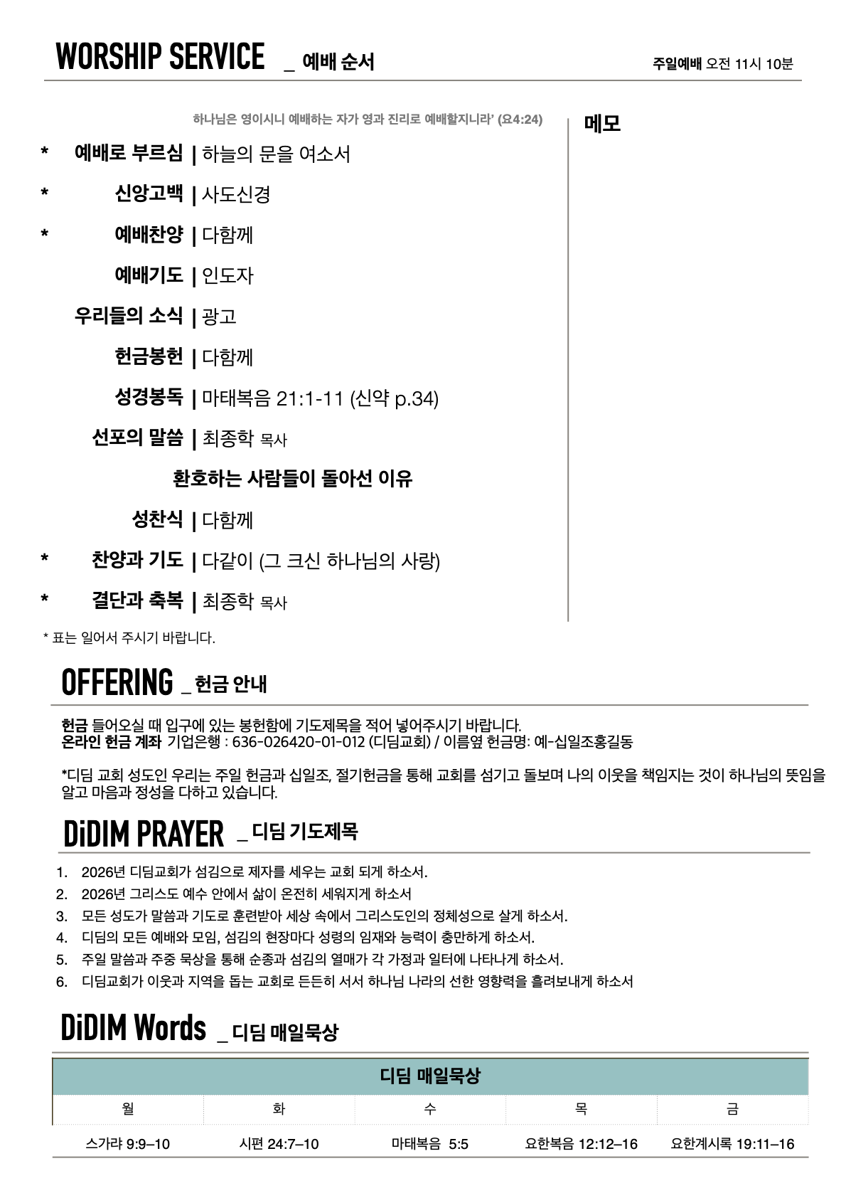 2026년 3월 29일 주일주보
